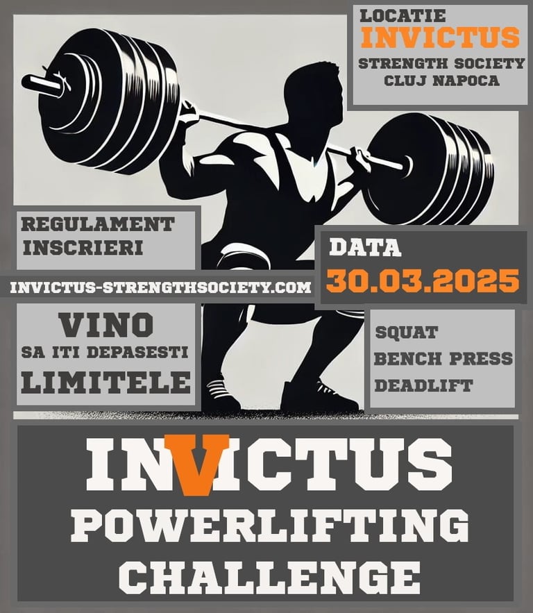 Avem plăcere să anunțăm „INVICTUS POWERLIFTING CHALLENGE”, un eveniment dedicat tuturor pasionaților de forță și performanță!